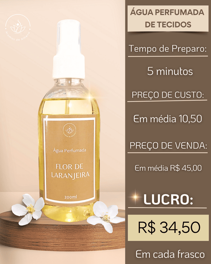 A produzir sua própria linha de produtos aromáticos, que nós, artesãs de aromas vendemos: Águas Perfumadas para Tecido, Home Spray, Água de Passar, Difusor de Aromas e Sabonete Líquido Hidratante.